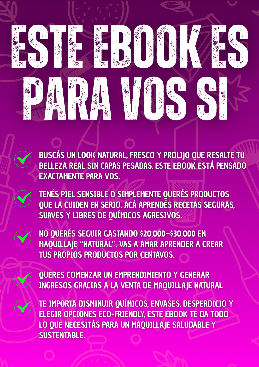 Siempre tuve piel sensible y todo me irritaba. Con este ebook mi piel se ve más sana y hago mi propio maquillaje sin miedo. ¡Un antes y después!